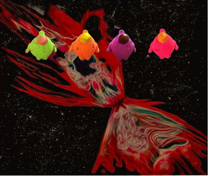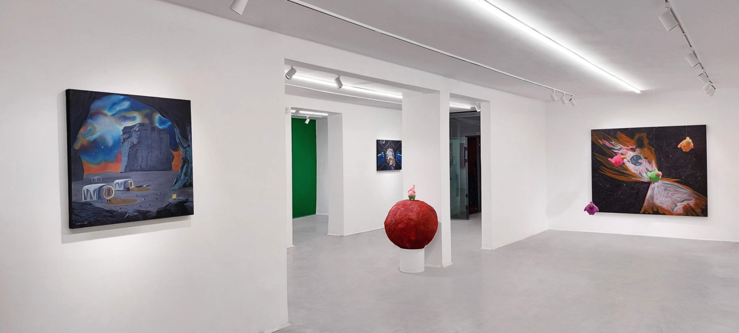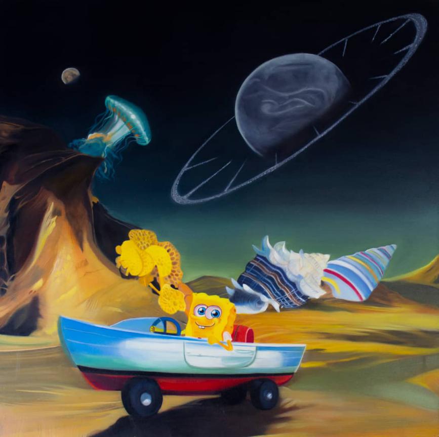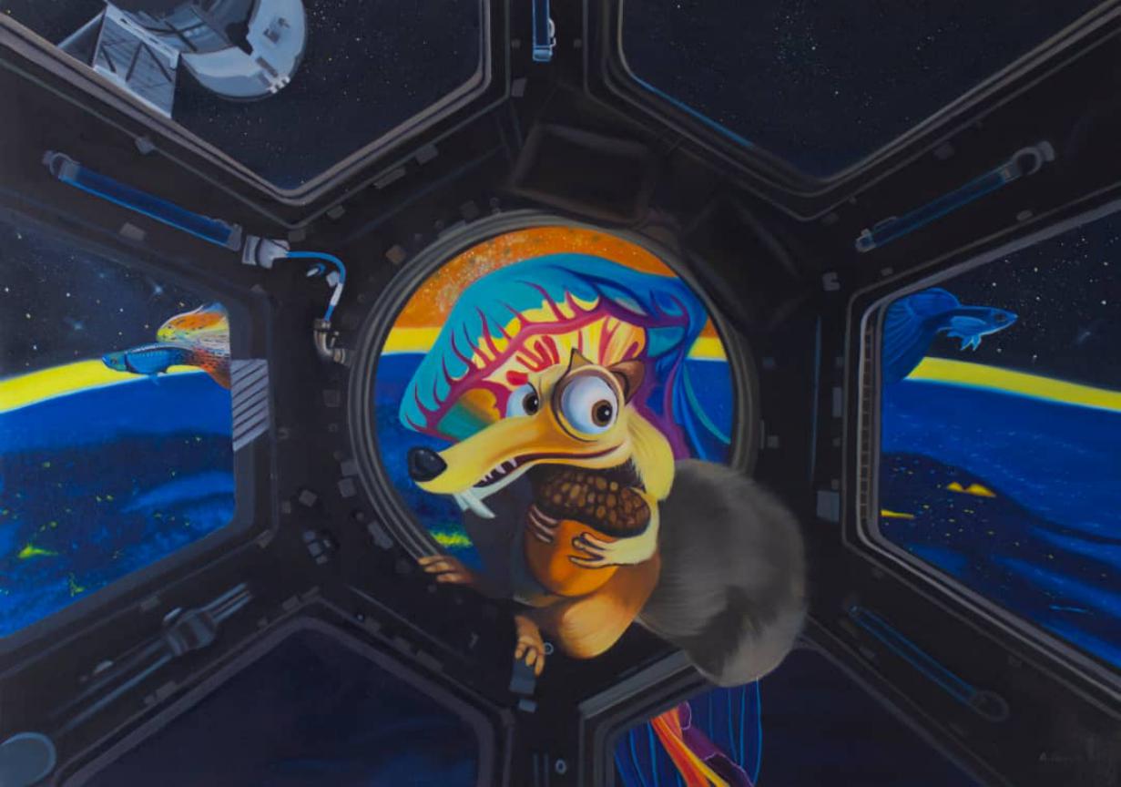 52 Hertz Station We have always wanted to escape the loneliness in the universe despite the advances in astronomy. However, our voice in the vastness of space is too faint and ineffective to be heard. Time in the universe is expanding at such a speed that everything within it quickly fades and disappears. In 1952, a whale was observed in the ocean emitting a sound at a frequency of 52 Hz, unable to hear or communicate with other whales. This was because it should have been able to produce and hear sounds in the range of 10 to 35 Hz. This whale became known as the loneliest whale in the world. In my dream, this event might suggest the existence of beings in the universe who have differences in connecting with us humans. This empathy and, at the same time, confusion, for me in the world of cartoon images and animation—where possibilities for inspiration and imagination are greatly amplified—has become the foundation for creating pieces inspired by paintings and sculptures related to my humorous interpretation of existence. A fanciful prediction of a fictional reality, presented in a humorous format with cartoon characters that could gently accompany us through the loneliness of the universe.