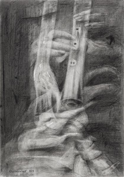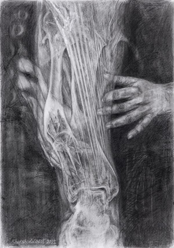 Do you hear? Ears get used to gentle and prolonged sounds and gradually consider them as silence. From then on, "listening" is no longer simple. One must be alert and sharpen their ears. In this collection, I've depicted the silence of the body. A quest for the melody that flows continuously within its depths. The soft and rhythmic whisper that the world's clamor has swallowed, and ears have embraced. Let us entrust our ears to the sound of bones. This collection is an endeavor toward "listening"...