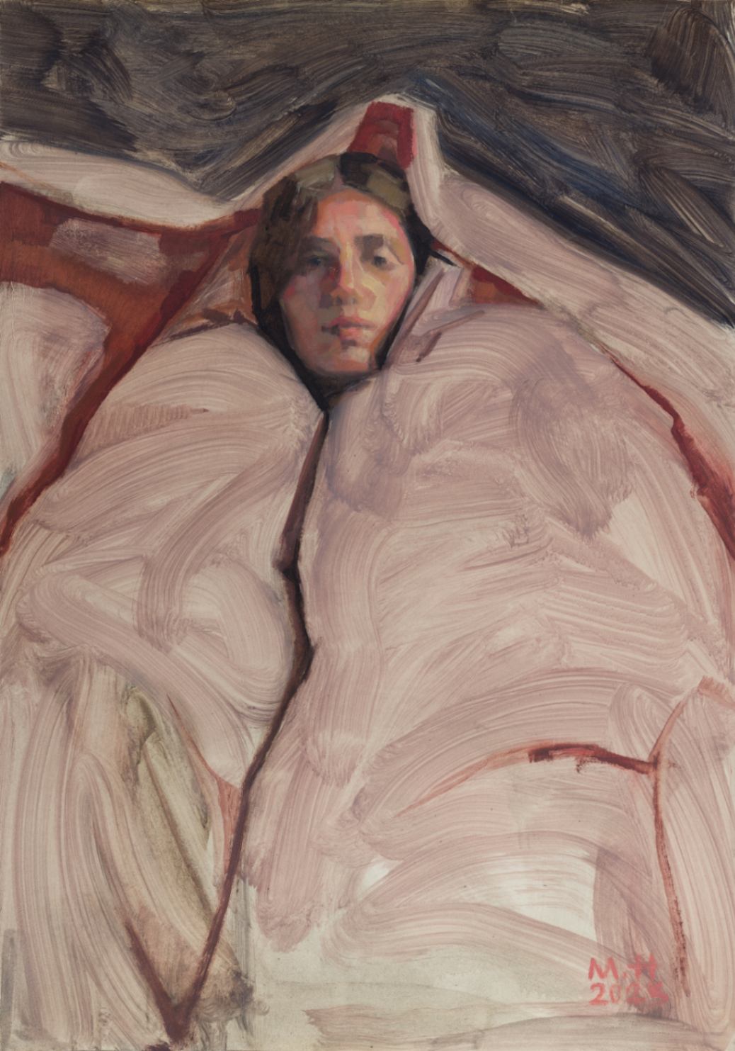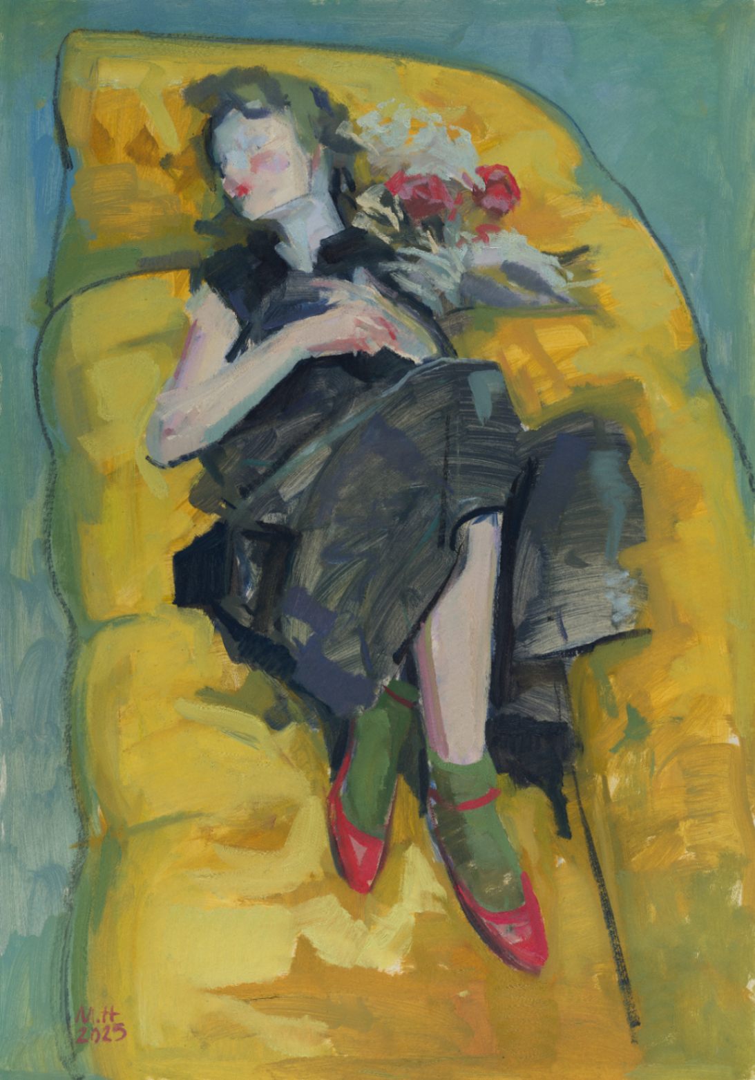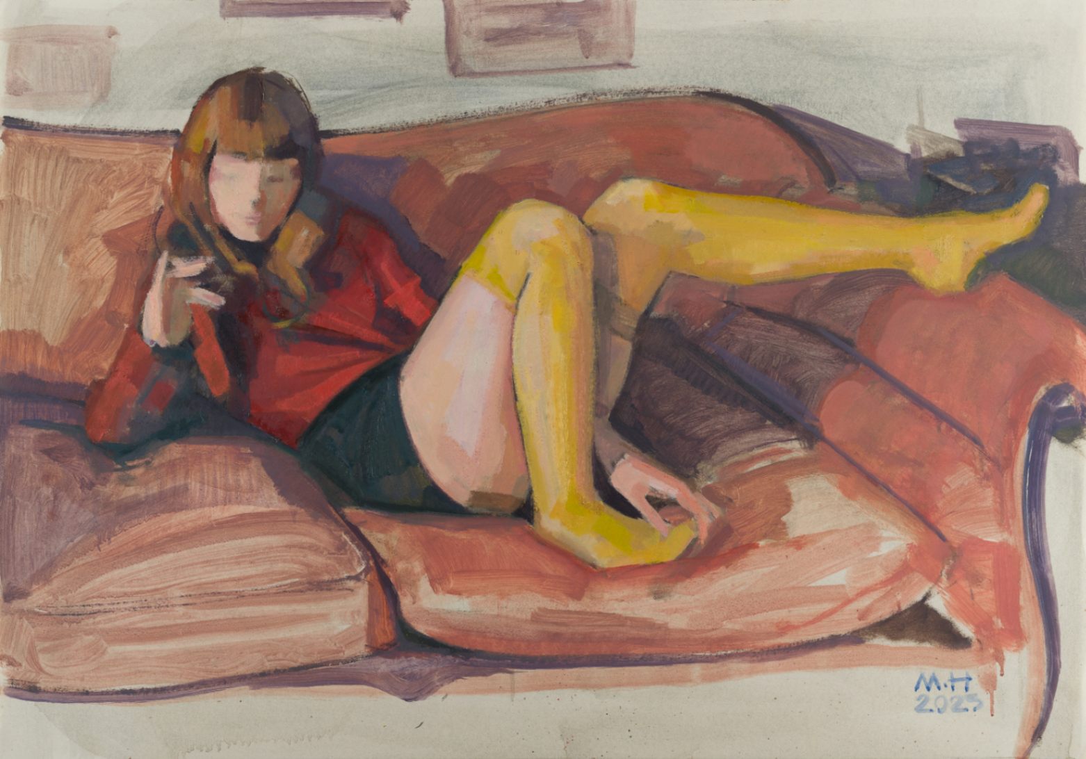 In Between In this series, I find myself positioned between two points: between the one whose image I create, and the one who will eventually look at it. I am neither at the beginning, nor at the end. I paint moments in the day, in rest, in self-absorption. There’s no particular event in the scene, but there is a sense of presence that remains unspoken. I’ve tried to approach that feeling through the act of painting. I’m not after precise representation or interpretation. I watch, I pause, and I choose the moment when something in the space has shifted—no matter how subtly. Each painting is the result of this long looking. Something from the model, something from the space, and something from me, almost unconsciously, finds its way into the work. What I want is for that specific moment—as it happened to me—to have the chance to be seen.