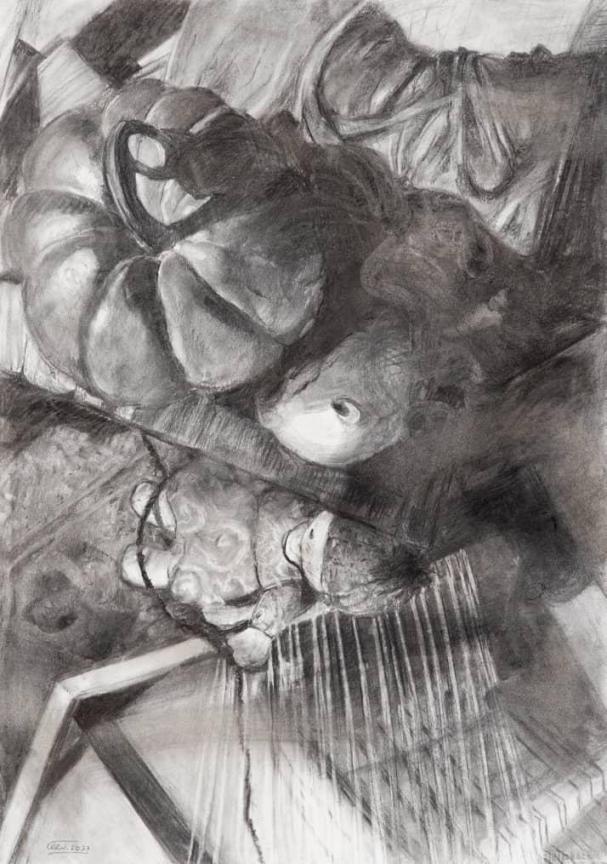 Charcoal on Cardboard / 50 × 70 cm ( 19 5/8 × 27 4/8 inches ) / 2023