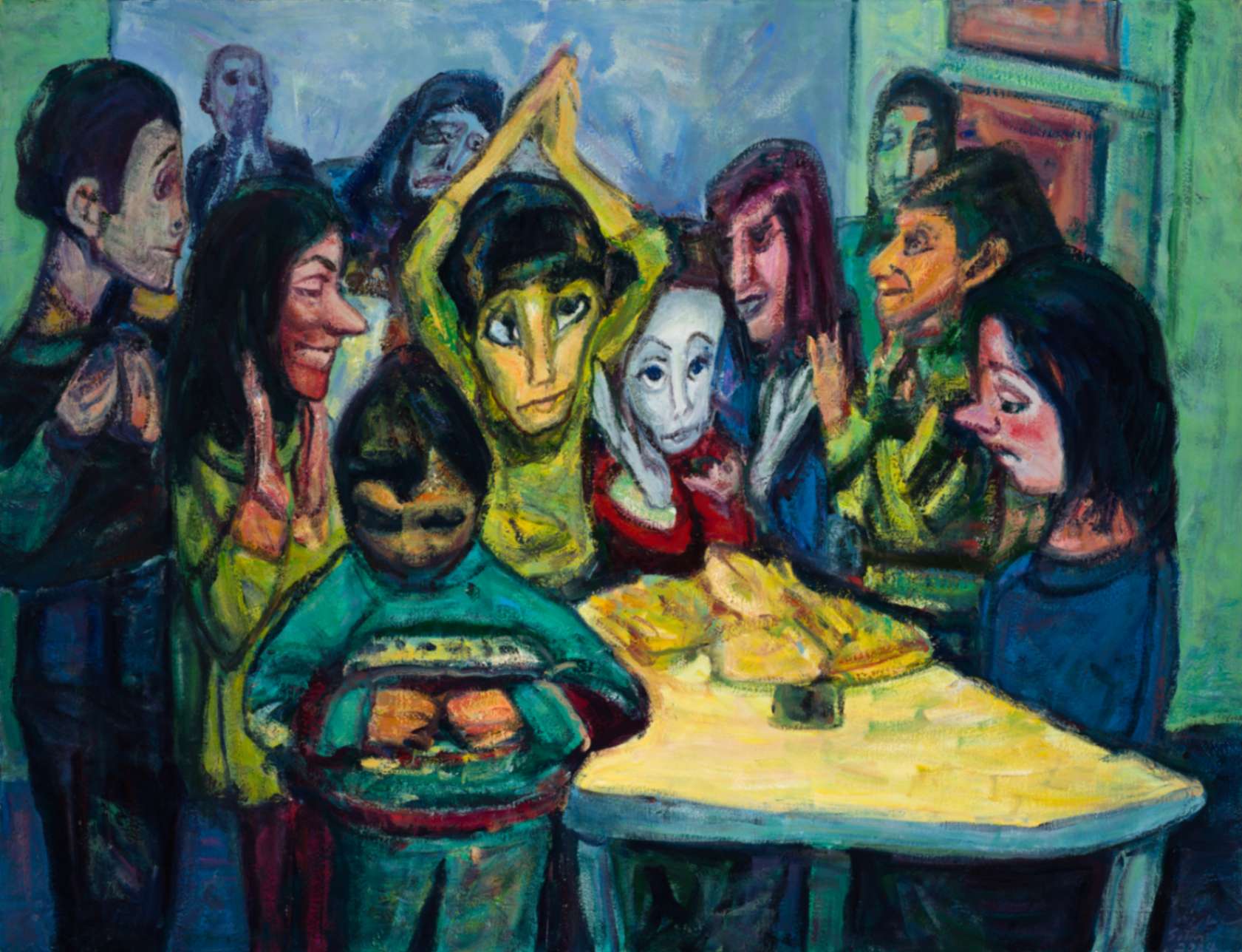 Shadow Dwellers Is the result of my year-long effort to depict the emotions and experiences of individuals marginalized in society. This collection portrays the lives and struggles of people including those with mental and physical disabilities, acid attack survivors, and the homeless-groups often overlooked in the bustle of daily life. In these works, I have sought to use exaggerated colors and bold forms to more deeply convey the psychological and emotional states of these subjects. The dynamic and expressive compositions reflect my attempt to capture the complex inner and outer worlds of these individuals.