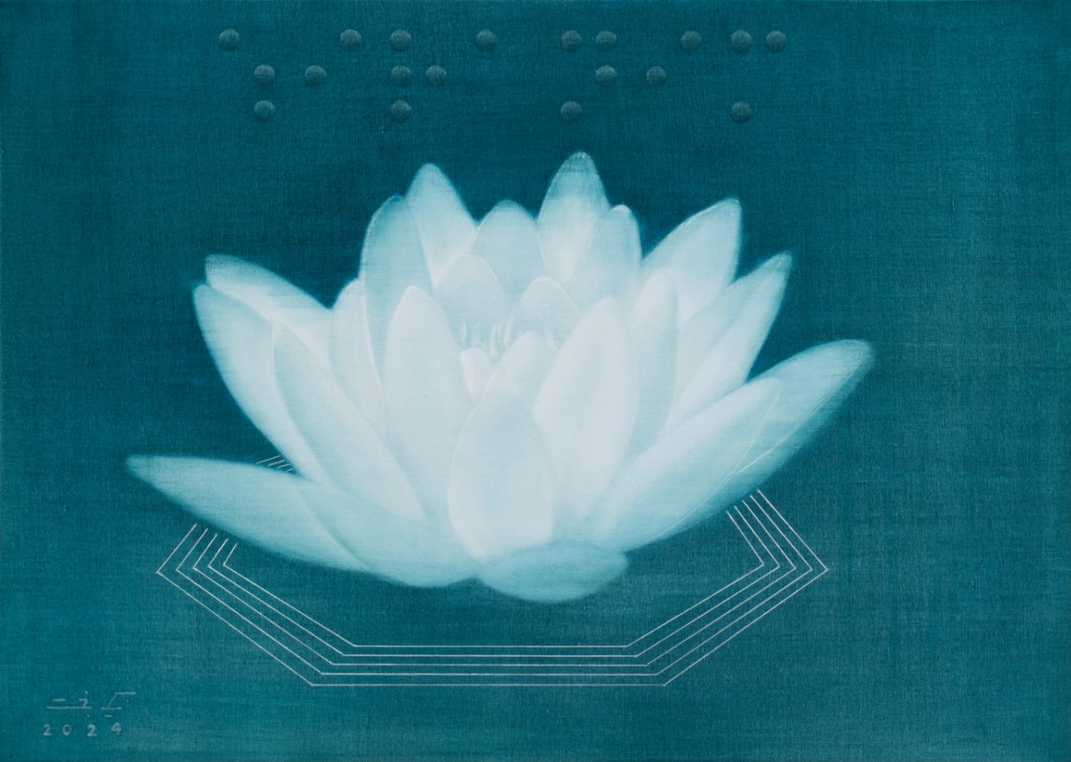 The Zen Garden This collection is inspired by the space of Zen gardens, where mortal flowers, eternal stones, and writings in Braille (for the visually impaired) are depicted through the oscillations of bright shadows. The world of mortal and eternal/ all in wonder."