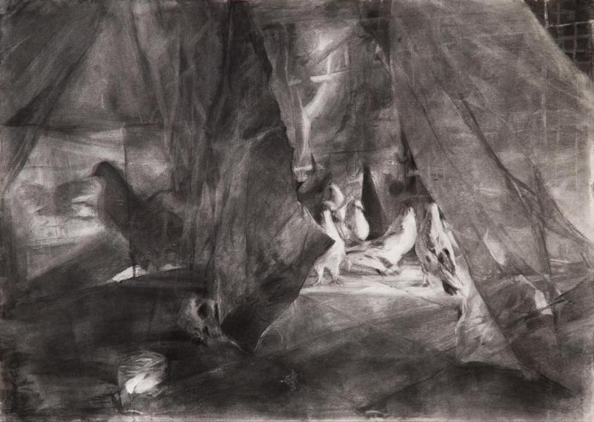 Charcoal on Cardboard / 50 × 70 cm ( 19 5/8 × 27 4/8 inches ) / 2023